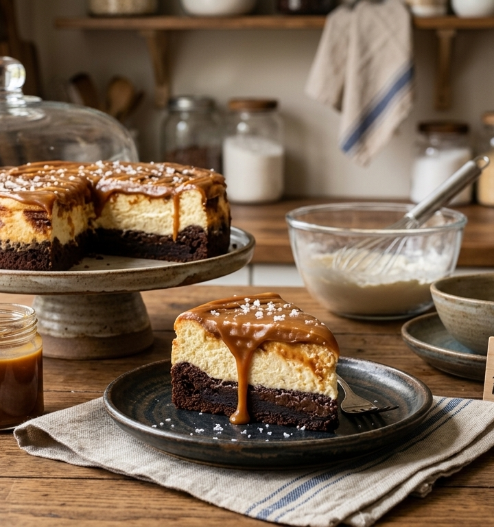 This Salted Caramel Brownie Cheesecake is a showstopper dessert, perfect for parties or indulgent evenings. Its fudgy brownie bottom, smooth cheesecake middle, and gooey caramel topping create a luxurious trifecta of flavor.